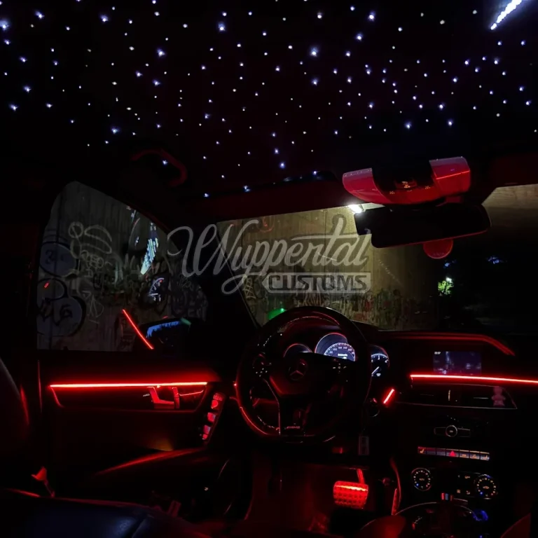 Unser Sternenhimmel wird sorgfältig von Hand installiert und individuell an Ihr Fahrzeug angepasst. Mit hunderten von einzelnen Lichtfasern schaffen wir eine luxuriöse, atmosphärische Optik – wahlweise mit Farbwechsel, Animationen oder Sternschnuppen-Effekten. Gesteuert wird alles bequem per App.