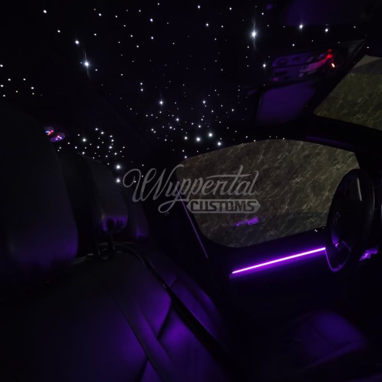 Unsere maßgeschneiderte Ambientebeleuchtung sorgt für eine exklusive Atmosphäre. Mehrere Zonen, Farbverläufe und App-Steuerung ermöglichen Ihnen die perfekte Stimmung in Ihrem Fahrzeug, ganz nach Ihrem Stil.
